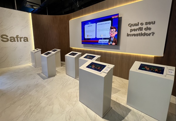 5️⃣ Banco Safra – Uma sala moderna inspirada na agência da Av. Faria Lima, onde o visitante experimenta comprar e vender ações em tempo real. É o momento de aprender como o investimento pode impulsionar sonhos, mesmo com os altos e baixos do mercado.