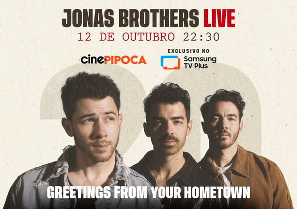 O Samsung TV Plus preparou um presentão para os fãs dos irmãos mais amados do pop! Neste domingo, 12 de outubro, às 22h30, o canal Cine Pipoca transmite ao vivo o show da turnê mundial Jonas20: Greetings From Your Hometown, direto de Milwaukee, Wisconsin (EUA) — uma celebração inesquecível dos 20 anos de carreira dos Jonas Brothers!