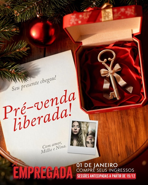 A Paris Filmes anunciou que a pré-venda de A Empregada, The Housemaid, já está disponível 🎬✨. O suspense, baseado no livro homônimo escrito por Freida McFadden, chega com sessões antecipadas a partir de 19 de dezembro e estreia oficial em 01 de janeiro, exclusivo nos cinemas 🎟️🍿.