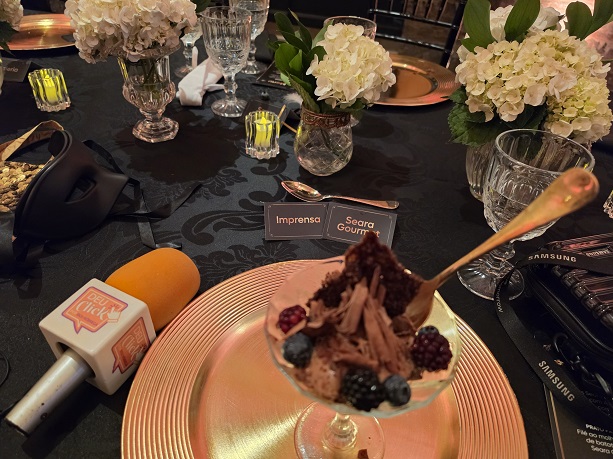 Durante o baile os convidados puderam conhecer e degustar os produtos da nova linha Seara Gourmet by Bridgerton, que inclui Duo de Salames e Copa, panelinha de filé ao molho de pimenta e purê com queijo, panelinha de mousse com chocolate belga e um kit presenteável que combina o duo de salames com vinho e alho negro. A proposta é simples (e chique): levar para o varejo uma experiência gourmet prática e sofisticada, perfeita para receber os amigos, montar aquela mesa aesthetic e transformar qualquer jantar em evento principal.