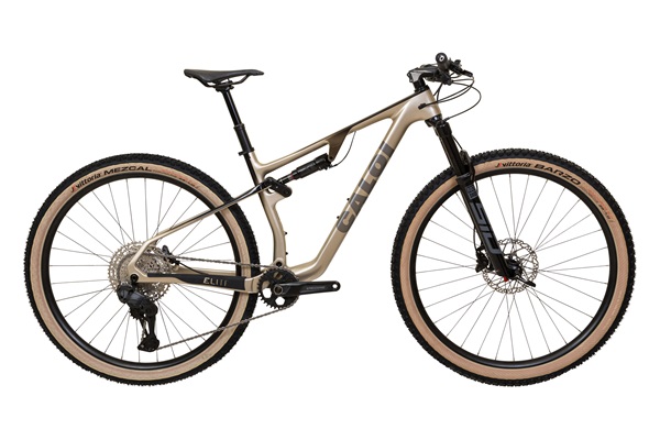 Na prática, a Elite Carbon FS Racing chega full suspension com sistema de cinemática progressiva e tecnologia Hybrid Travel, permitindo ajuste de curso traseiro entre 100 mm e 110 mm, além de suspensão dianteira RockShox SID Select de 120 mm. Resumão: absorve tudo e ainda voa baixo nas trilhas mais pesadas.