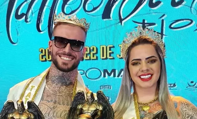 Miss e Mister Tattoo Week Rio 2023 são uma modelo e um personal trainer.